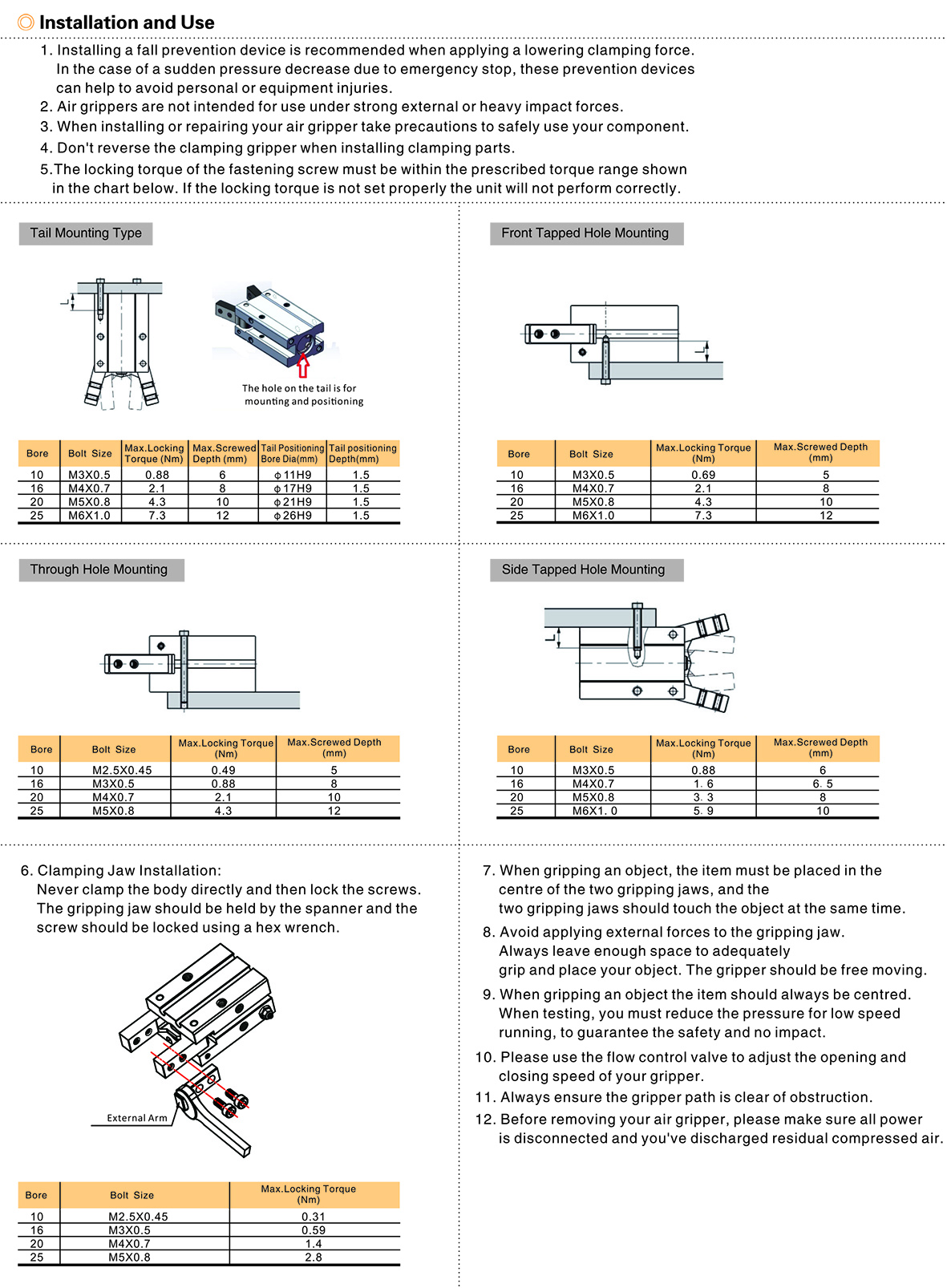 SHY Series Y type pneumatic gripper, bore sizes range from 10mm to 25mm, simultaneously machining in Horizontal CNC for cylinder body, gives high guarantee with extremely high precision and consistency. The gripper is designed with single piston structure, which has higher gripping torques. It’s easy for user to adjust pneumatic gripper responding speed with adjustable flow valve self-equipped, the suitable gripping angle gives wider application for this type pneumatic gripper. All pneumatic grippers has magnet inside with corresponding sensor slot design on gripper body for automation control. Various mounting type are availabe for SHY series pneumatic gripper.